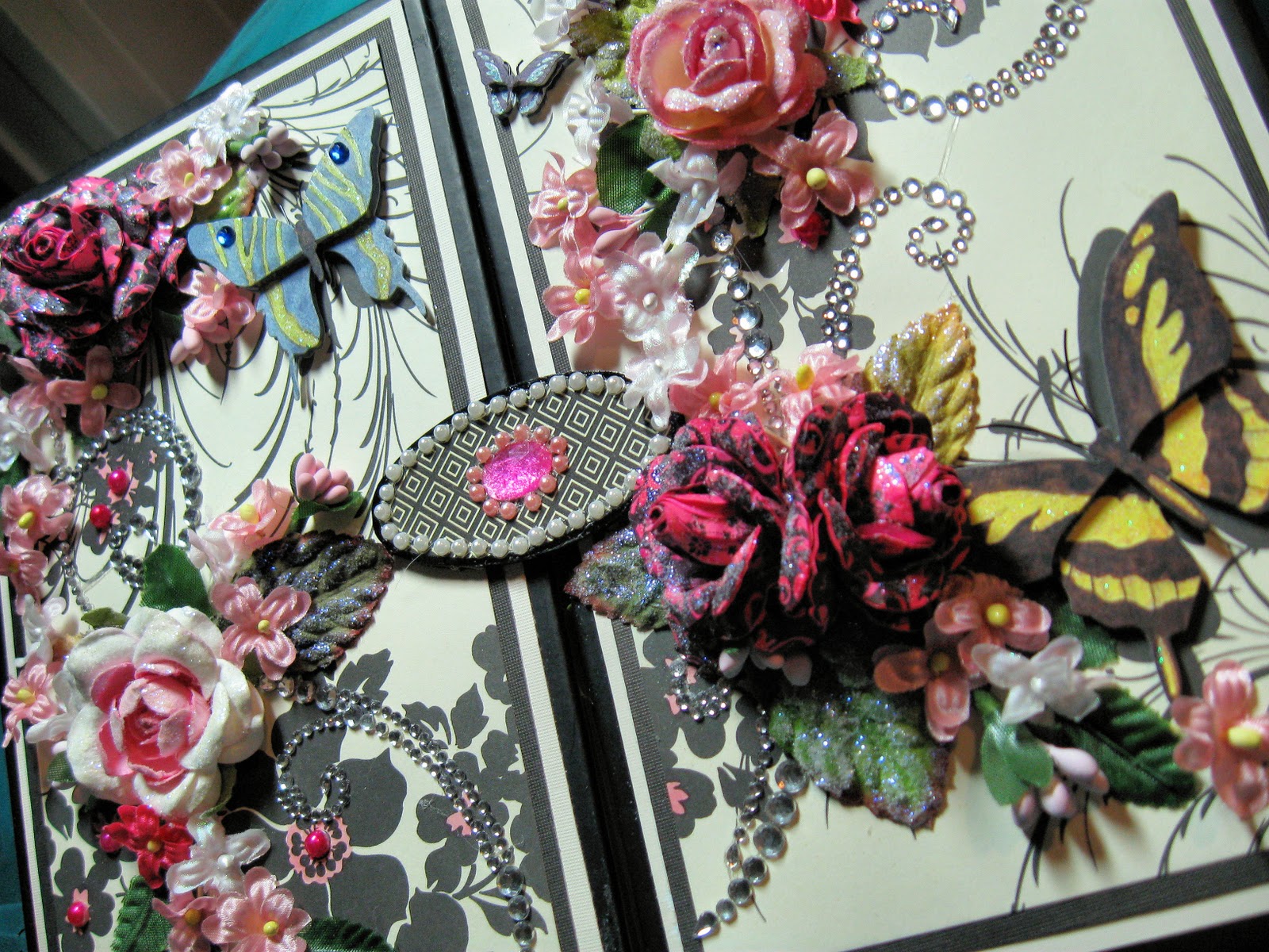 All of the butterflies are by K & Company, from the Susan Winget collection. The blingy swirls are by Say it with Crystals.